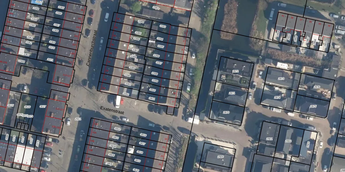 Gebruik de zoekbalk of klik op een perceel voor informatie over de adressen binnen dit perceel.