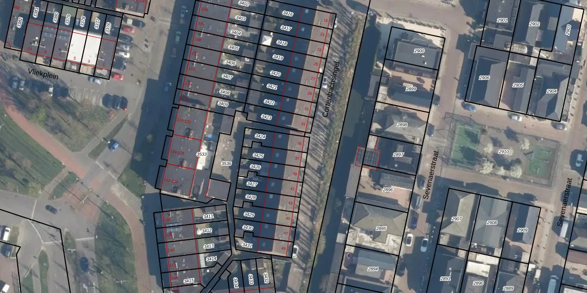 Gebruik de zoekbalk of klik op een perceel voor informatie over de adressen binnen dit perceel.