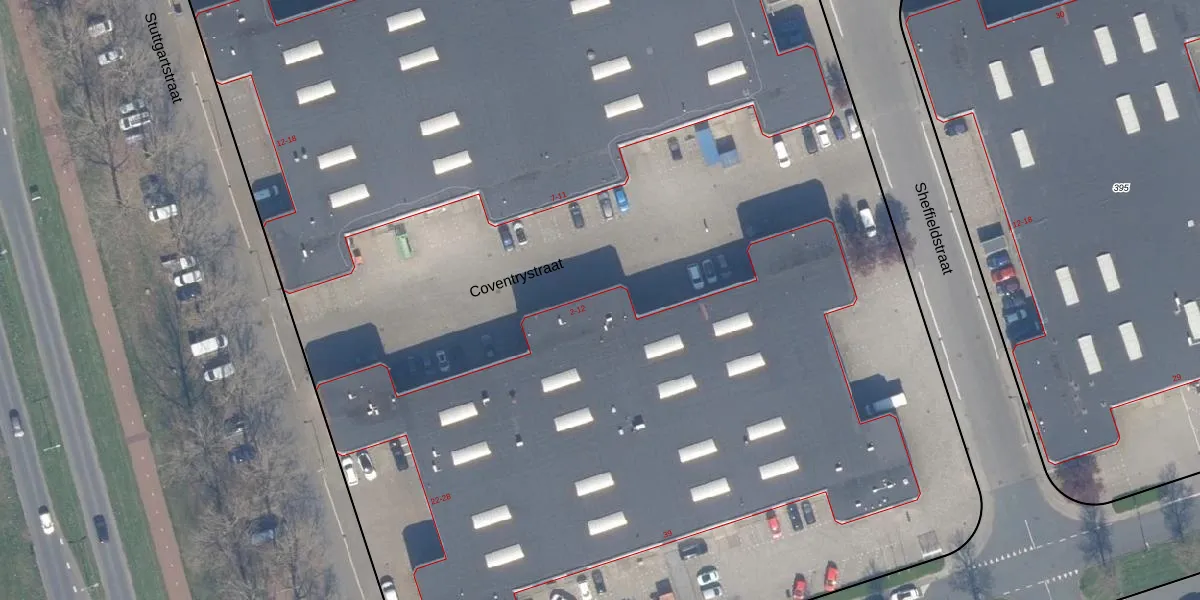 Het perceel waarop Coventrystraat 8 staat heeft een oppervlakte van 2,0 ha. Dit is een zeer groot perceel. De perceeloppervlakte wordt geregistreerd door het Kadaster. Gedetailleerde informatie over de maten van dit perceel kunt u vinden in het rapport Kadastrale kaart met maatvoering van Coventrystraat 8.