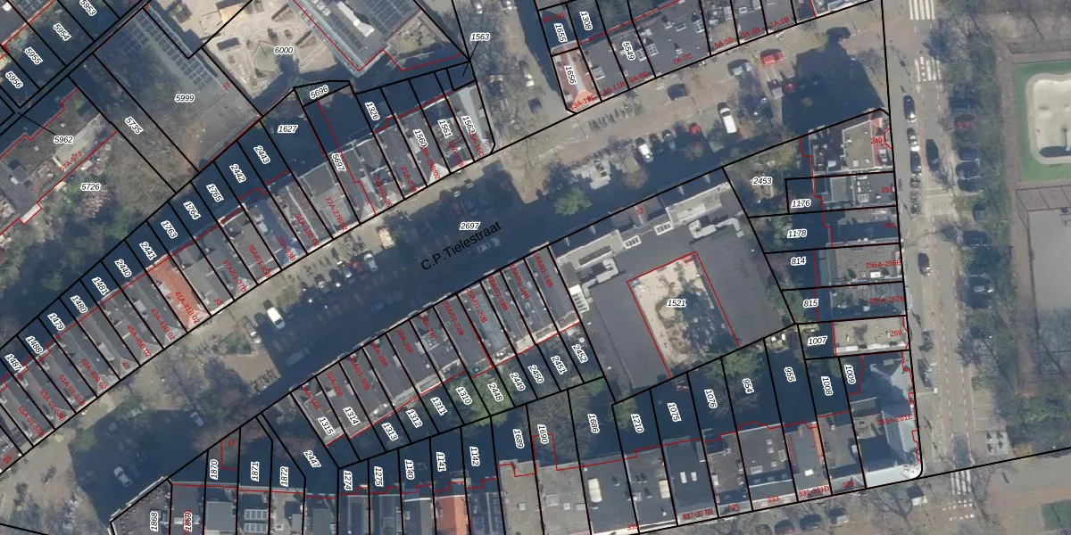 Het perceel waarop C.P.Tielestraat 14-B staat heeft een oppervlakte van 121 m². Dit is een middelgroot perceel. De perceeloppervlakte wordt geregistreerd door het Kadaster. Gedetailleerde informatie over de maten van dit perceel kunt u vinden in het rapport Kadastrale kaart met maatvoering van C.P.Tielestraat 14-B.