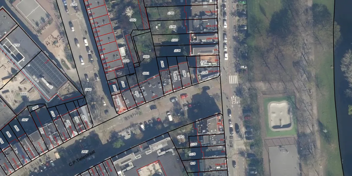 C.P.Tielestraat 3-A is gelegen op kadastraal perceel DHV00C2445. Deze kadastrale aanduiding is uniek en wordt gebruikt door het Kadaster om eigendomsrechten en andere zakelijke rechten vast te leggen. Het perceel maakt onderdeel uit van de kadastrale gemeente Delfshaven.