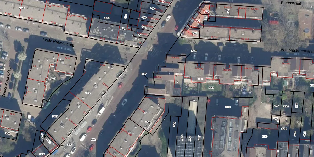 Het adres ligt op het perceel RTD07-R-7156, dat zich in de kadastrale gemeente Rotterdam bevindt. Het perceel is met 1390 m² relatief groot. Het gemiddelde ligt in de kadastrale gemeente Rotterdam op 506,86 m². De grootste perceeloppervlakte in de kadastrale gemeente is 10,8 ha. De kleinste oppervlakte bedraagt 0 m². Er zijn 37 adressen aanwezig op het perceel. De huidige grenzen van het perceel zijn digitaal in de Basisregistratie Kadaster (BRK) geregistreerd op 24-01-2003.