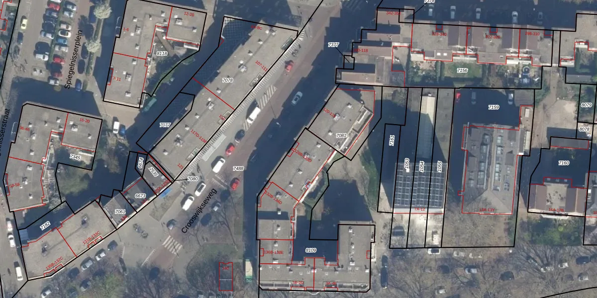 Het adres ligt op het perceel RTD07-R-8109, dat zich in de kadastrale gemeente Rotterdam bevindt. Het perceel is met 1325 m² relatief groot. Het gemiddelde ligt in de kadastrale gemeente Rotterdam op 506,86 m². Het grootste perceel in de kadastrale gemeente is 10,8 ha. Het kleinste perceel heeft een oppervlakte van 0 m². Er zijn 40 adressen aanwezig op het perceel. In de Basisregistratie Kadaster (BRK) werden de grenzen van het perceel geregistreerd op 28-11-2022.