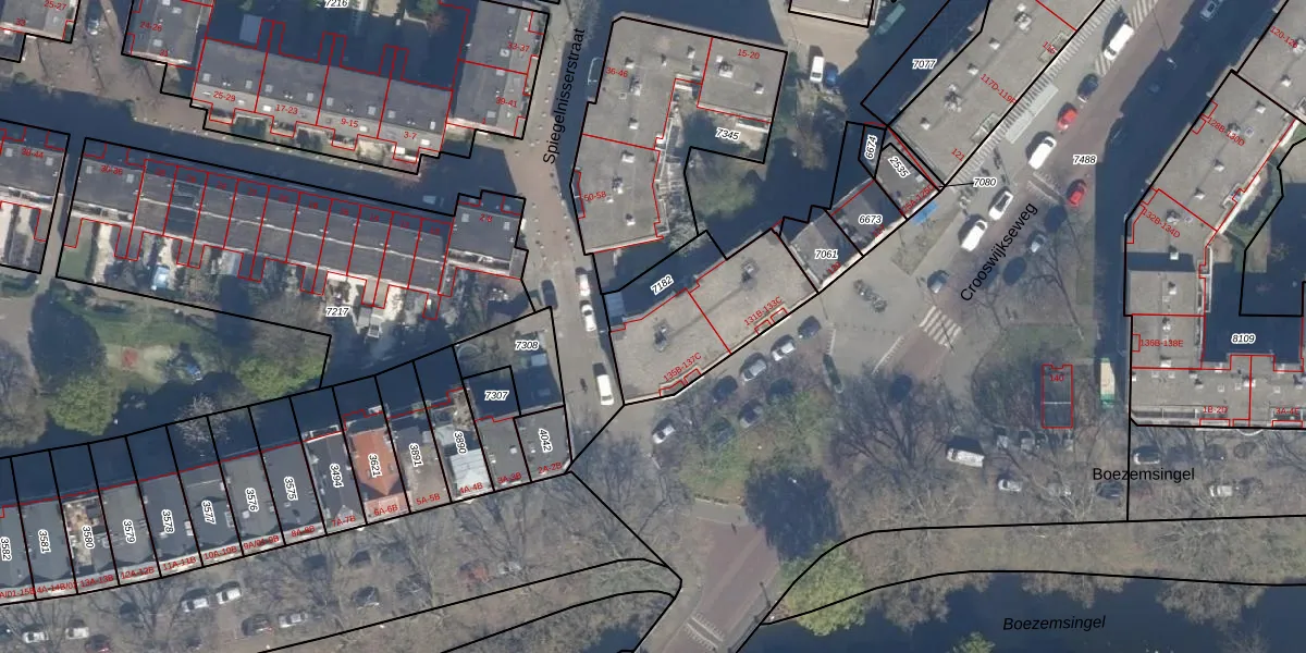 Het adres ligt op het perceel RTD07-R-7182, dat zich in de kadastrale gemeente Rotterdam bevindt. Het perceel is met 515 m² relatief groot. Het gemiddelde ligt in de kadastrale gemeente Rotterdam op 506,86 m². Het grootste perceel in de kadastrale gemeente is 10,8 ha. Het kleinste perceel heeft een oppervlakte van 0 m². Er zijn 10 adressen aanwezig op het perceel. De laatste wijziging in het de Basisregistratie Kadaster (BRK) was op 28-06-2004.