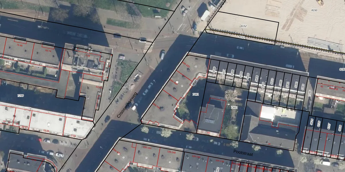 Het adres ligt op het perceel RTD07-R-7441, dat zich in de kadastrale gemeente Rotterdam bevindt. Het perceel is met 1049 m² relatief groot. Het gemiddelde ligt in de kadastrale gemeente Rotterdam op 506,86 m². Het kleinste perceel in de kadastrale gemeente is 0 m² groot. De grootste perceeloppervlakte is 10,8 ha. Er zijn 26 adressen aanwezig op het perceel. De laatste wijziging in het de Basisregistratie Kadaster (BRK) was op 24-01-2003.