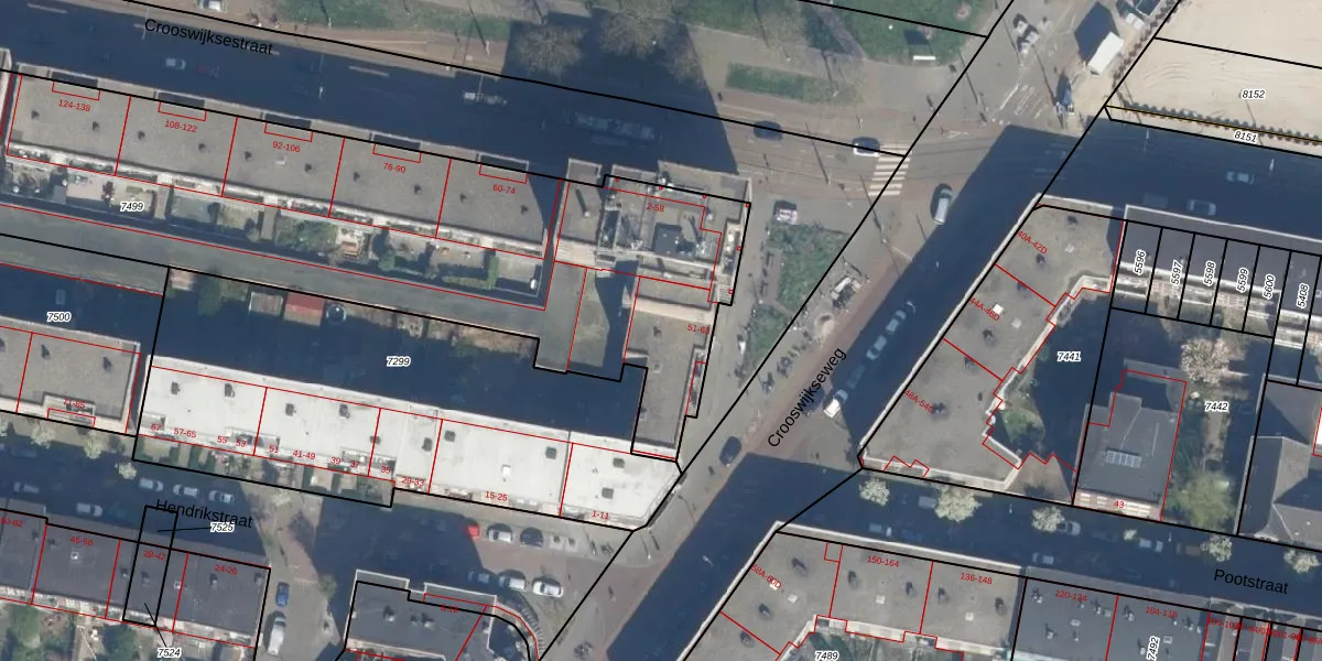 Crooswijkseweg 55 is gelegen op kadastraal perceel RTD07R7499. Deze kadastrale aanduiding is uniek en wordt gebruikt door het Kadaster om eigendomsrechten en andere zakelijke rechten vast te leggen. Het perceel maakt onderdeel uit van de kadastrale gemeente Rotterdam.