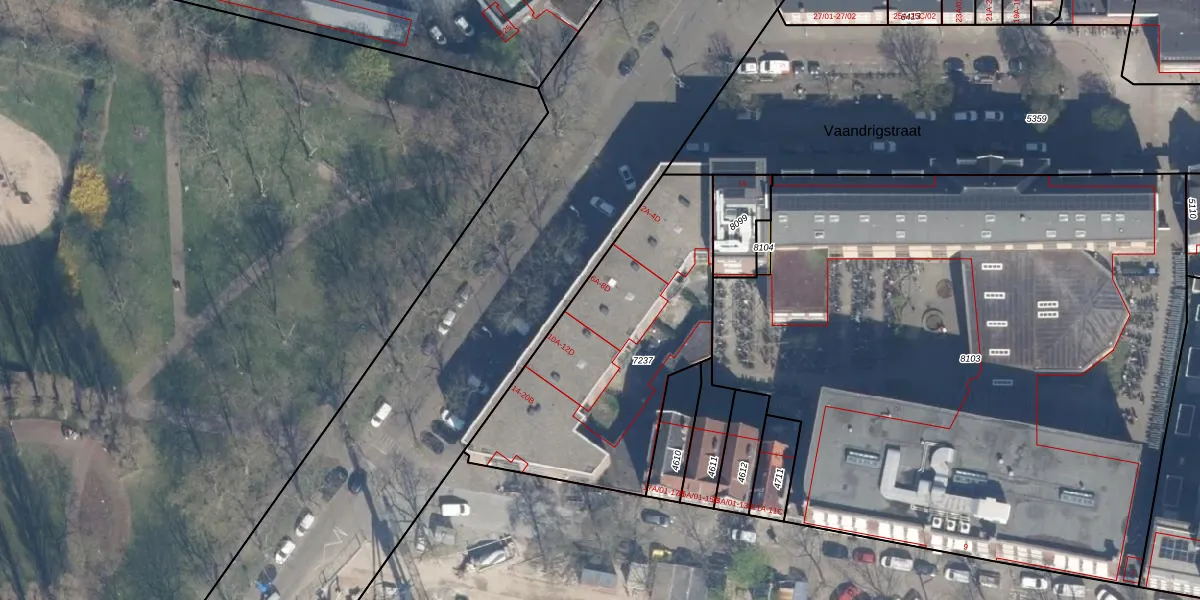 Het adres ligt op het perceel RTD07-R-7237, dat zich in de kadastrale gemeente Rotterdam bevindt. Het perceel is met 1180 m² relatief groot. Het gemiddelde ligt in de kadastrale gemeente Rotterdam op 506,86 m². Het kleinste perceel in de kadastrale gemeente is 0 m² groot. De grootste perceeloppervlakte is 10,8 ha. Op het perceel liggen in totaal 31 adressen. In de Basisregistratie Kadaster (BRK) werden de grenzen van het perceel geregistreerd op 24-01-2003.