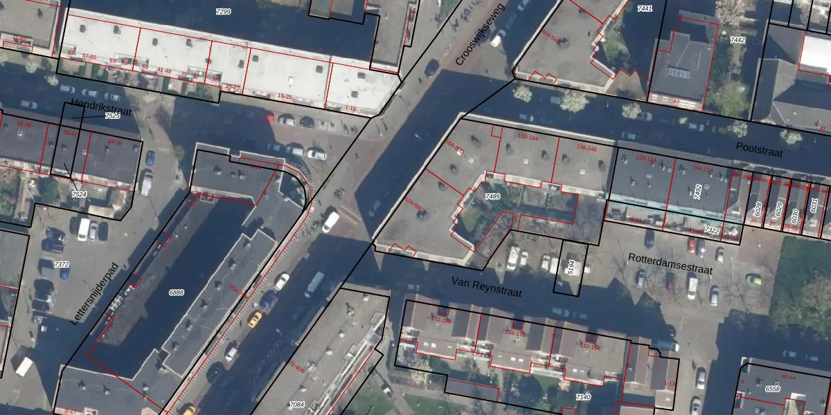 Crooswijkseweg 62-A is gelegen op kadastraal perceel RTD07R7489. Deze kadastrale aanduiding is uniek en wordt gebruikt door het Kadaster om eigendomsrechten en andere zakelijke rechten vast te leggen. Het perceel maakt onderdeel uit van de kadastrale gemeente Rotterdam.