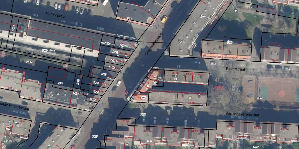 Het adres ligt op het perceel RTD07-R-983, dat zich in de kadastrale gemeente Rotterdam bevindt. De gemiddelde perceelgrootte in Rotterdam is 506,86 m². Dit perceel is kleiner: de perceeloppervlakte bedraagt 95 m². De grootste perceeloppervlakte in de kadastrale gemeente is 10,8 ha. De kleinste oppervlakte bedraagt 0 m². Er zijn 4 adressen aanwezig op het perceel. De laatste wijziging in het de Basisregistratie Kadaster (BRK) was op 24-01-2003.