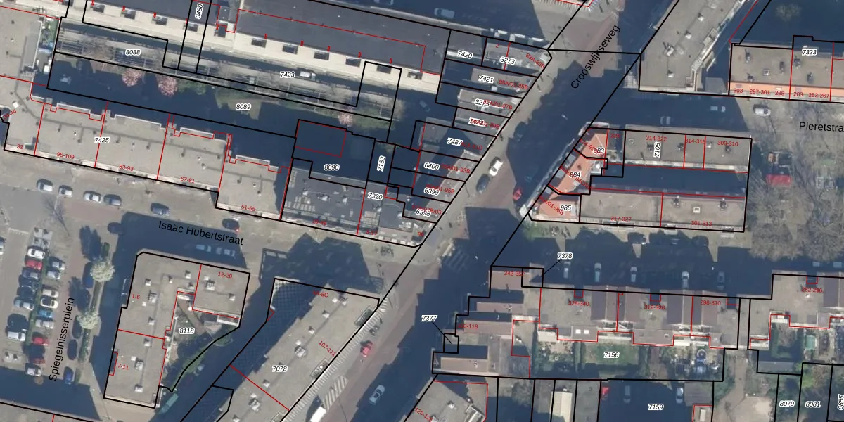 Het adres ligt op het perceel RTD07-R-6398, dat zich in de kadastrale gemeente Rotterdam bevindt. De gemiddelde perceelgrootte in Rotterdam is 506,86 m². Dit perceel is kleiner: de perceeloppervlakte bedraagt 62 m². De grootste perceeloppervlakte in de kadastrale gemeente is 10,8 ha. De kleinste oppervlakte bedraagt 0 m². Op het perceel liggen in totaal 3 adressen. De huidige grenzen van het perceel zijn digitaal in de Basisregistratie Kadaster (BRK) geregistreerd op 24-01-2003.