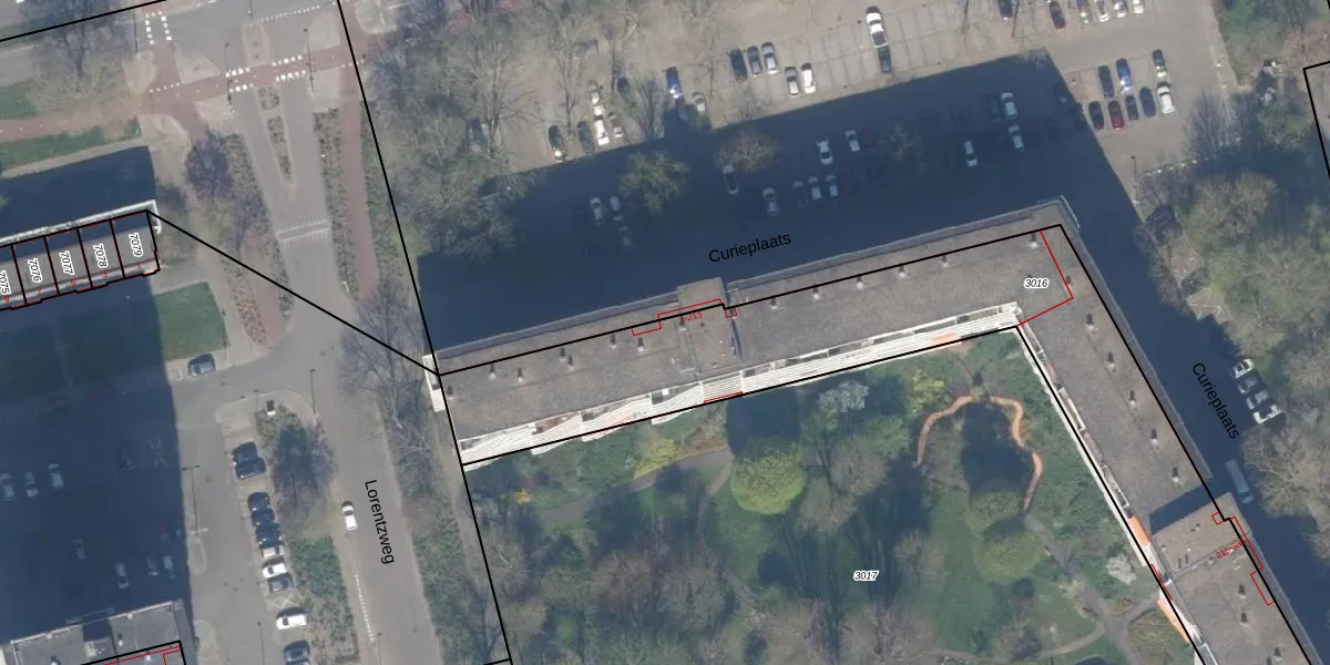 Het perceel waarop Curieplaats 153 staat heeft een oppervlakte van 2452 m². Dit is een zeer groot perceel. De perceeloppervlakte wordt geregistreerd door het Kadaster. Gedetailleerde informatie over de maten van dit perceel kunt u vinden in het rapport Kadastrale kaart met maatvoering van Curieplaats 153.