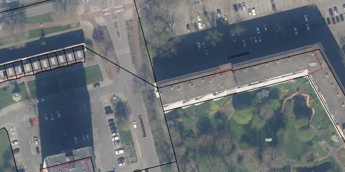 Het perceel waarop Curieplaats 7 staat heeft een oppervlakte van 2452 m². Dit is een zeer groot perceel. De perceeloppervlakte wordt geregistreerd door het Kadaster. Gedetailleerde informatie over de maten van dit perceel kunt u vinden in het rapport Kadastrale kaart met maatvoering van Curieplaats 7.