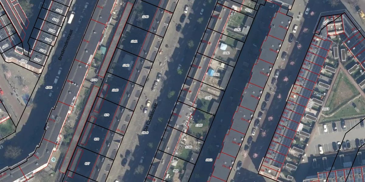 Da Costastraat 134 is gelegen op kadastraal perceel RTD10Z1144. Deze kadastrale aanduiding is uniek en wordt gebruikt door het Kadaster om eigendomsrechten en andere zakelijke rechten vast te leggen. Het perceel maakt onderdeel uit van de kadastrale gemeente Rotterdam.