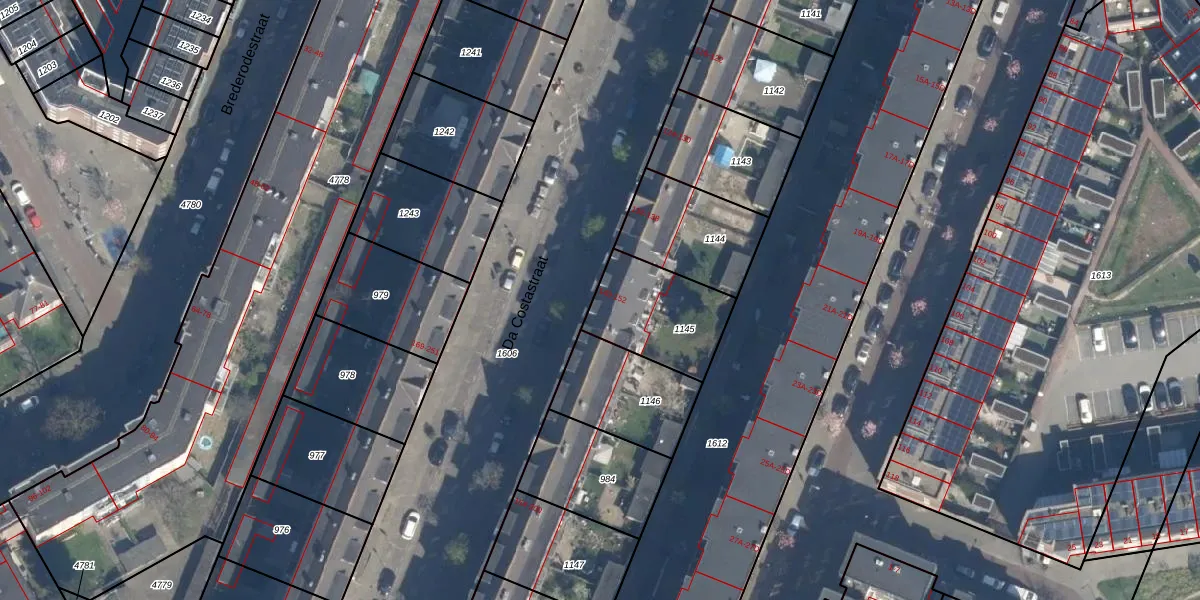 Het perceel waarop Da Costastraat 140 staat heeft een oppervlakte van 320 m². Dit is een groot perceel. De perceeloppervlakte wordt geregistreerd door het Kadaster. Gedetailleerde informatie over de maten van dit perceel kunt u vinden in het rapport Kadastrale kaart met maatvoering van Da Costastraat 140.
