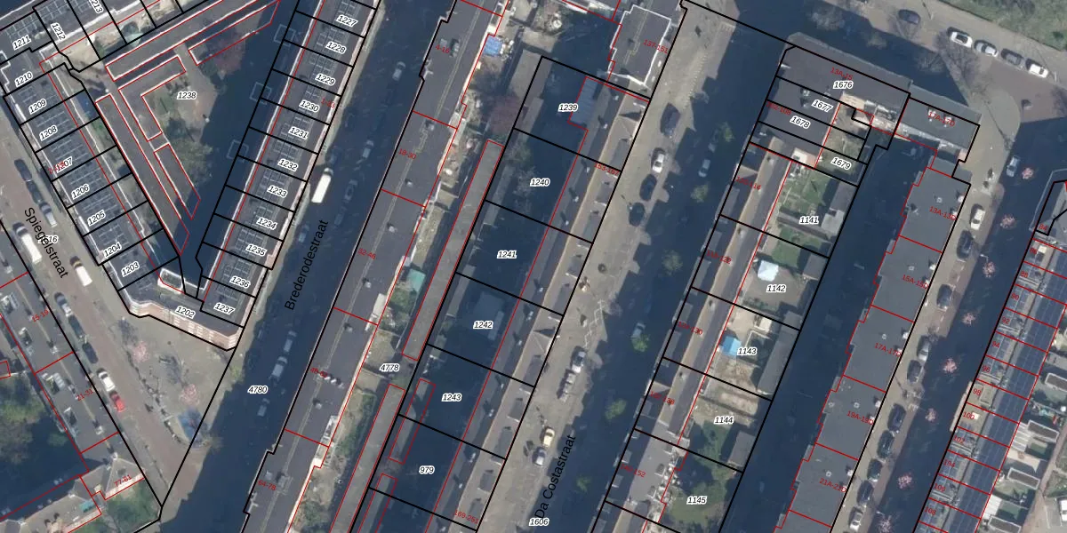 Het perceel waarop Da Costastraat 175 staat heeft een oppervlakte van 319 m². Dit is een groot perceel. De perceeloppervlakte wordt geregistreerd door het Kadaster. Gedetailleerde informatie over de maten van dit perceel kunt u vinden in het rapport Kadastrale kaart met maatvoering van Da Costastraat 175.
