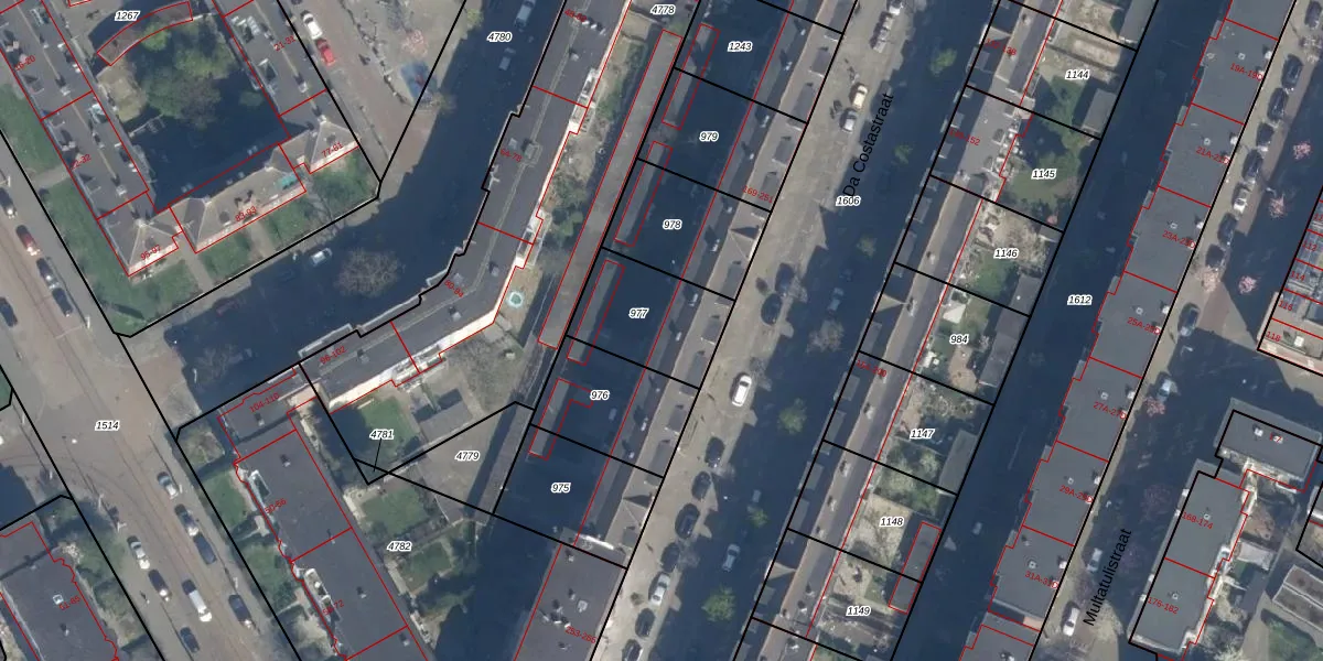 Het adres ligt op het perceel RTD10-Z-977, dat zich in de kadastrale gemeente Rotterdam bevindt. Het perceel is kleiner dan gemiddeld in Rotterdam. Het perceel is 319 m² groot, terwijl het gemiddelde ligt op 1601,7 m². Het kleinste perceel in de kadastrale gemeente is 0 m² groot. De grootste perceeloppervlakte is 30,3 ha. Er zijn 3 adressen aanwezig op het perceel. In de Basisregistratie Kadaster (BRK) werden de grenzen van het perceel geregistreerd op 22-11-2002.