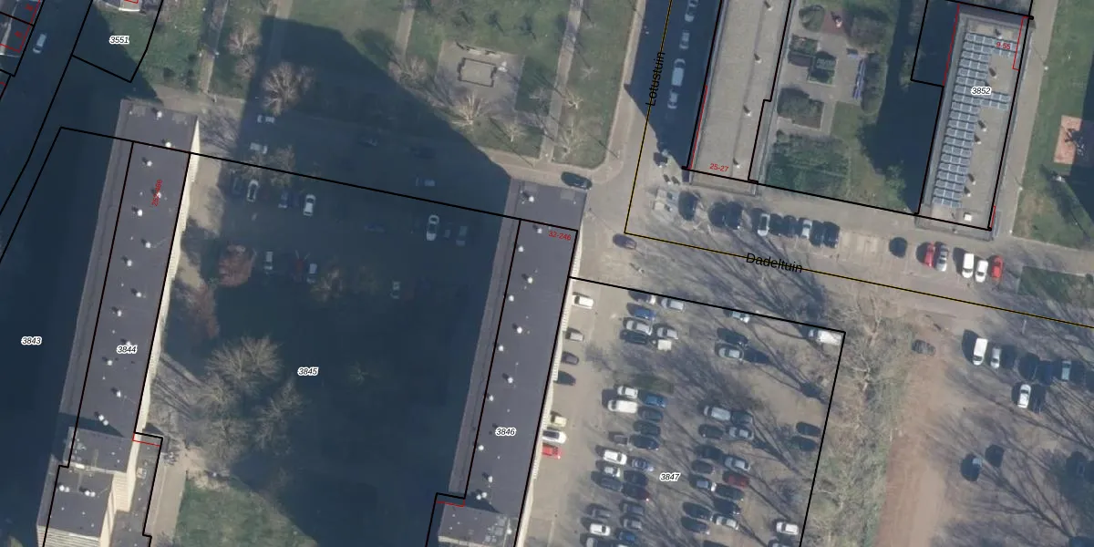 Het perceel waarop Dadeltuin 78 staat heeft een oppervlakte van 970 m². Dit is een groot perceel. De perceeloppervlakte wordt geregistreerd door het Kadaster. Gedetailleerde informatie over de maten van dit perceel kunt u vinden in het rapport Kadastrale kaart met maatvoering van Dadeltuin 78.