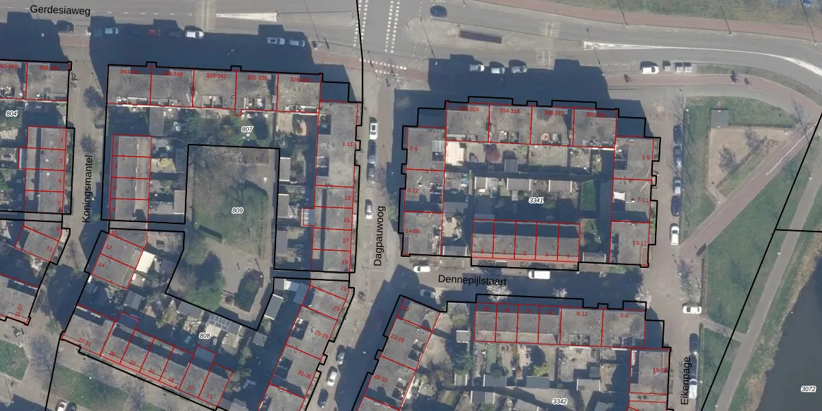 Het perceel waarop Dagpauwoog 10 staat heeft een oppervlakte van 2328 m². Dit is een zeer groot perceel. De perceeloppervlakte wordt geregistreerd door het Kadaster. Gedetailleerde informatie over de maten van dit perceel kunt u vinden in het rapport Kadastrale kaart met maatvoering van Dagpauwoog 10.