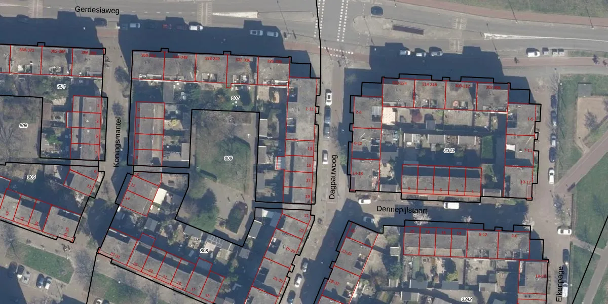 Het perceel waarop Dagpauwoog 13 staat heeft een oppervlakte van 2078 m². Dit is een zeer groot perceel. De perceeloppervlakte wordt geregistreerd door het Kadaster. Gedetailleerde informatie over de maten van dit perceel kunt u vinden in het rapport Kadastrale kaart met maatvoering van Dagpauwoog 13.