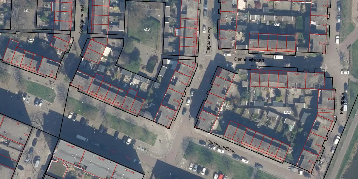 Het perceel waarop Dagpauwoog 29 staat heeft een oppervlakte van 1855 m². Dit is een zeer groot perceel. De perceeloppervlakte wordt geregistreerd door het Kadaster. Gedetailleerde informatie over de maten van dit perceel kunt u vinden in het rapport Kadastrale kaart met maatvoering van Dagpauwoog 29.