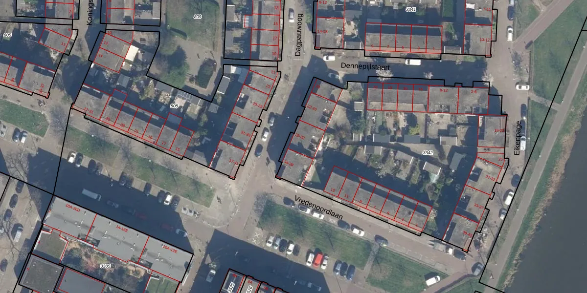 Het perceel waarop Dagpauwoog 32 staat heeft een oppervlakte van 3320 m². Dit is een zeer groot perceel. De perceeloppervlakte wordt geregistreerd door het Kadaster. Gedetailleerde informatie over de maten van dit perceel kunt u vinden in het rapport Kadastrale kaart met maatvoering van Dagpauwoog 32.