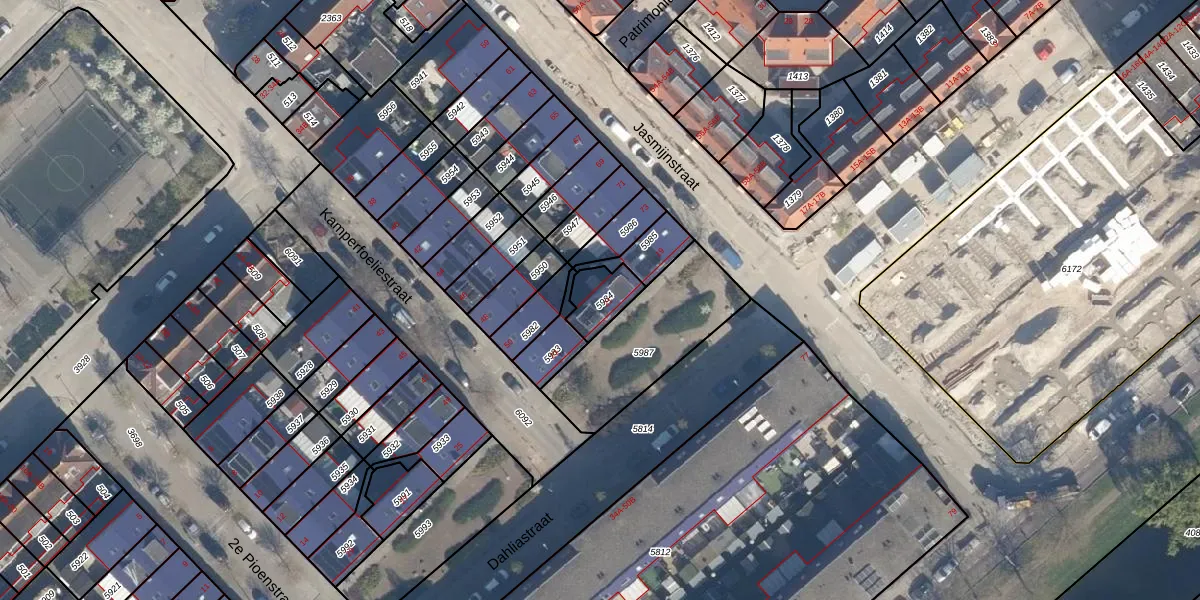 Gebruik de zoekbalk of klik op een perceel voor informatie over de adressen binnen dit perceel.