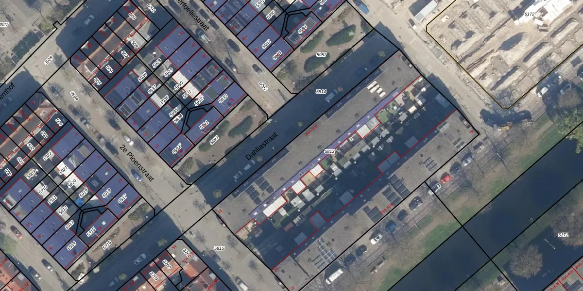 Dahliastraat 44-A is gelegen op kadastraal perceel CLS00G5812. Deze kadastrale aanduiding is uniek en wordt gebruikt door het Kadaster om eigendomsrechten en andere zakelijke rechten vast te leggen. Het perceel maakt onderdeel uit van de kadastrale gemeente Charlois.
