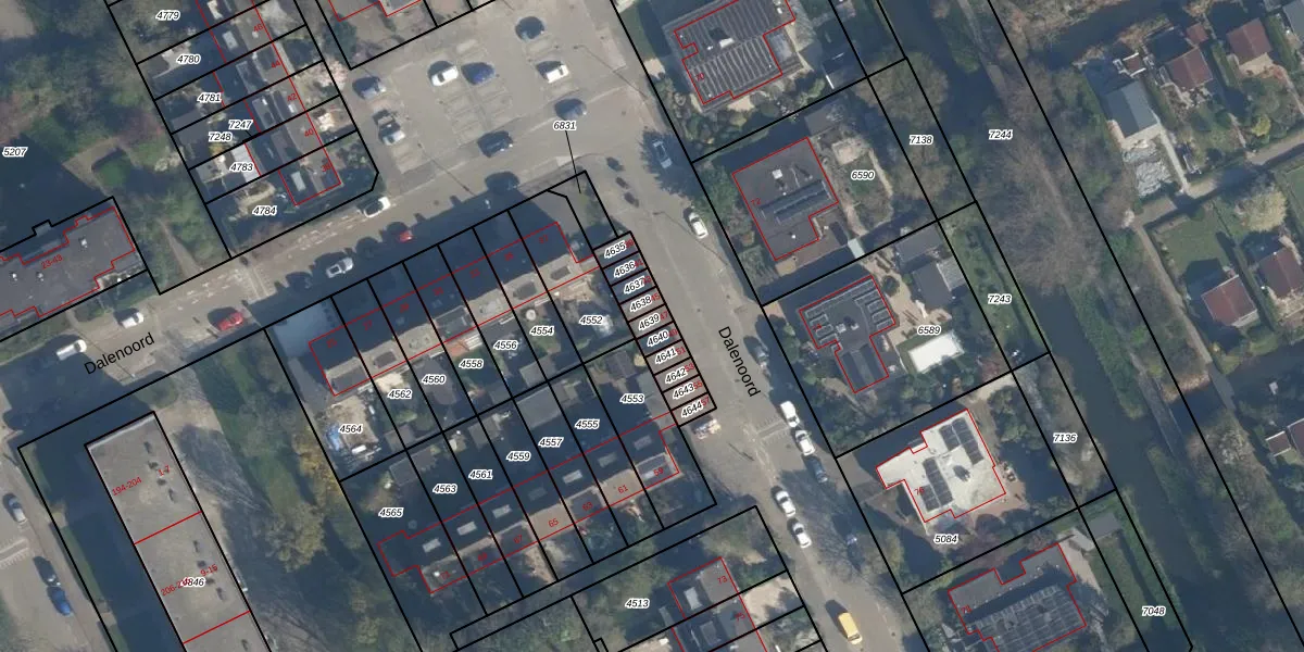 Het perceel waarop Dalenoord 47 staat heeft een oppervlakte van 19 m². Dit is een klein perceel. De perceeloppervlakte wordt geregistreerd door het Kadaster. Gedetailleerde informatie over de maten van dit perceel kunt u vinden in het rapport Kadastrale kaart met maatvoering van Dalenoord 47.