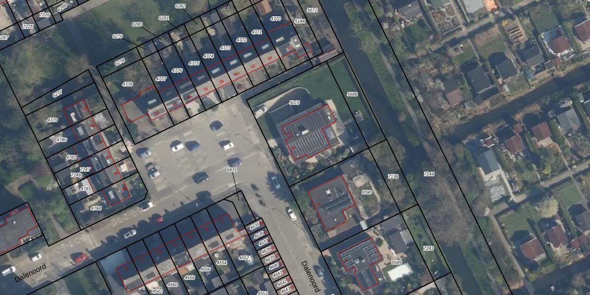 Het perceel waarop Dalenoord 70 staat heeft een oppervlakte van 990 m². Dit is een groot perceel. De perceeloppervlakte wordt geregistreerd door het Kadaster. Gedetailleerde informatie over de maten van dit perceel kunt u vinden in het rapport Kadastrale kaart met maatvoering van Dalenoord 70.