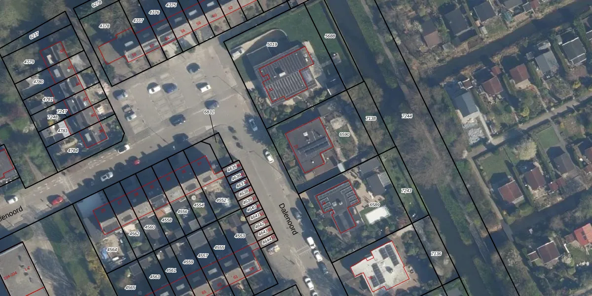 Het perceel waarop Dalenoord 72 staat heeft een oppervlakte van 728 m². Dit is een groot perceel. De perceeloppervlakte wordt geregistreerd door het Kadaster. Gedetailleerde informatie over de maten van dit perceel kunt u vinden in het rapport Kadastrale kaart met maatvoering van Dalenoord 72.