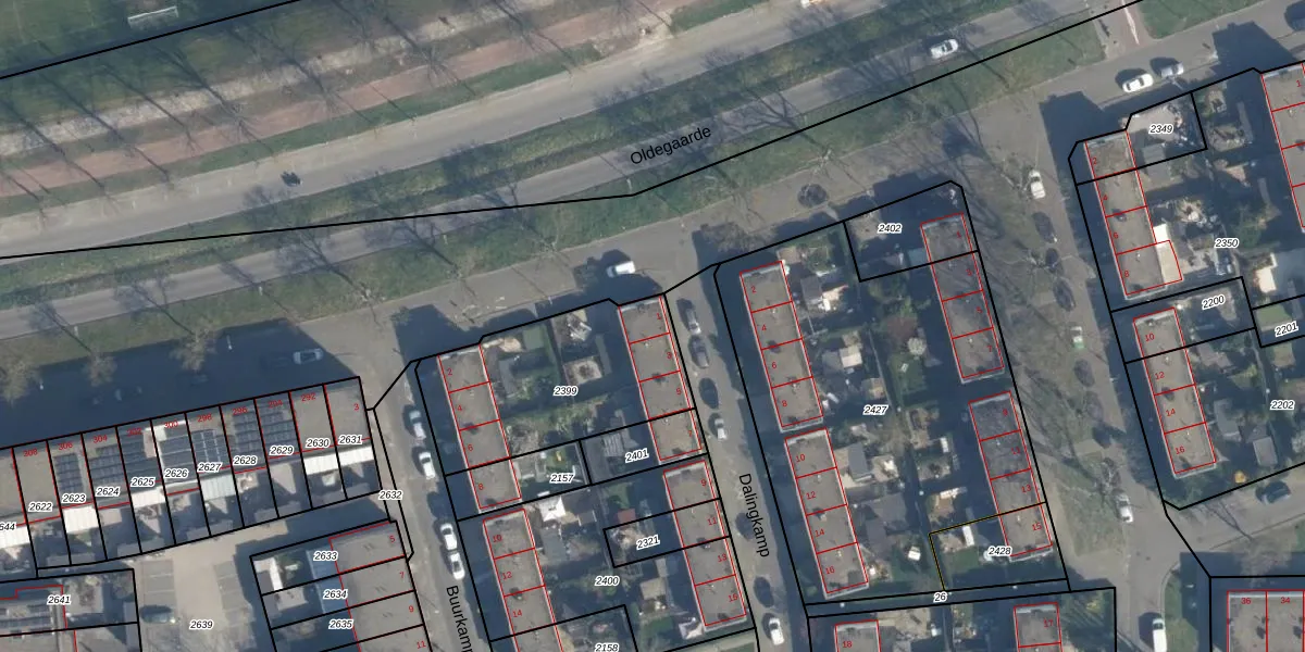 Het perceel waarop Dalingkamp 1 staat heeft een oppervlakte van 751 m². Dit is een groot perceel. De perceeloppervlakte wordt geregistreerd door het Kadaster. Gedetailleerde informatie over de maten van dit perceel kunt u vinden in het rapport Kadastrale kaart met maatvoering van Dalingkamp 1.