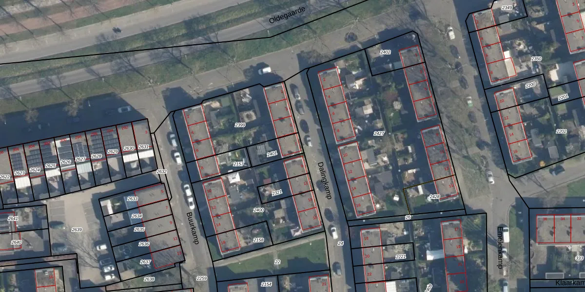 Dalingkamp 7 is gelegen op kadastraal perceel CLS00K2401. Deze kadastrale aanduiding is uniek en wordt gebruikt door het Kadaster om eigendomsrechten en andere zakelijke rechten vast te leggen. Het perceel maakt onderdeel uit van de kadastrale gemeente Charlois.