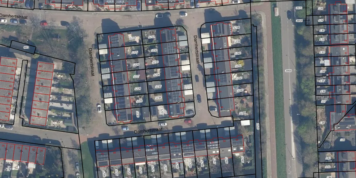 Gebruik de zoekbalk of klik op een perceel voor informatie over de adressen binnen dit perceel.