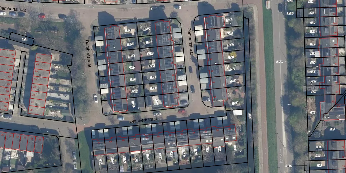Gebruik de zoekbalk of klik op een perceel voor informatie over de adressen binnen dit perceel.