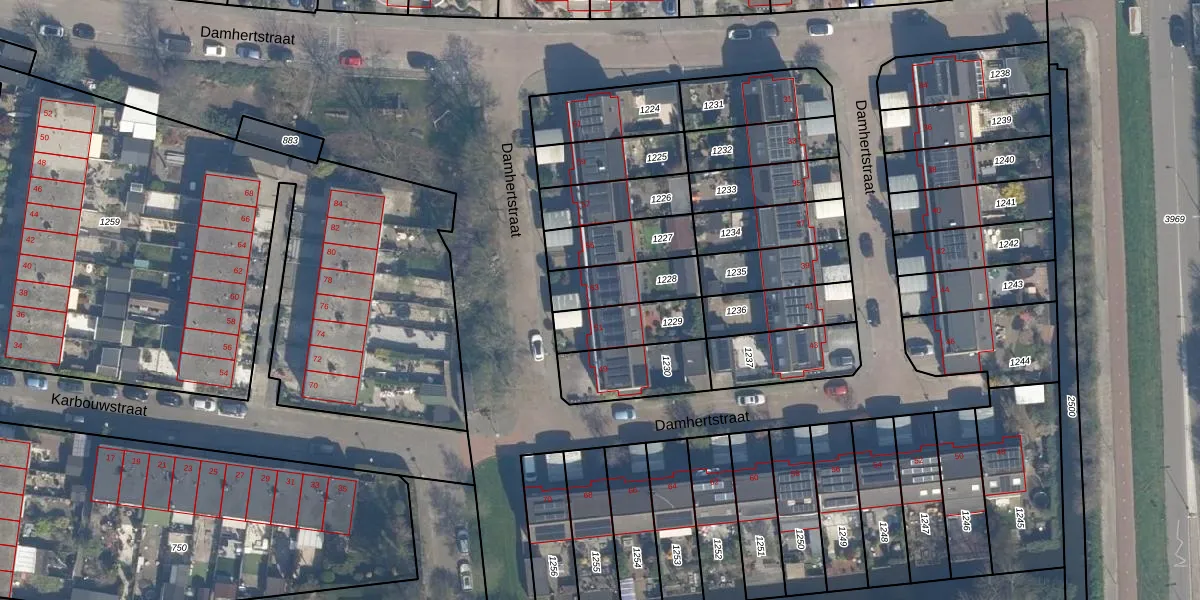 Damhertstraat 53 is gelegen op kadastraal perceel KLG00H1228. Deze kadastrale aanduiding is uniek en wordt gebruikt door het Kadaster om eigendomsrechten en andere zakelijke rechten vast te leggen. Het perceel maakt onderdeel uit van de kadastrale gemeente Kralingen.