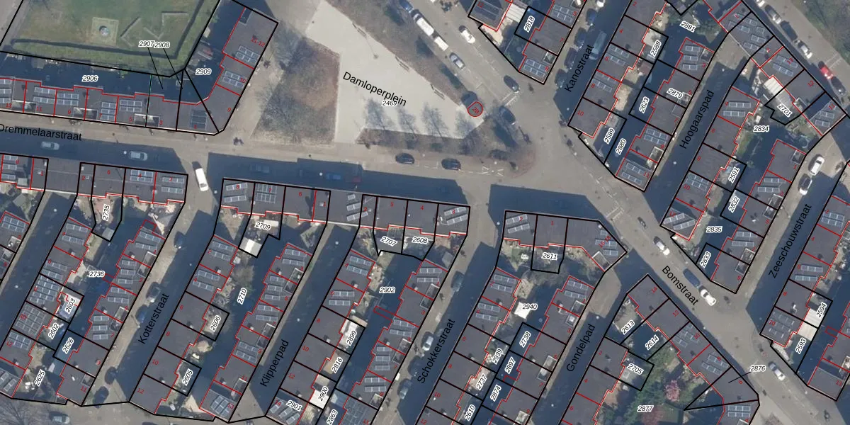 Gebruik de zoekbalk of klik op een perceel voor informatie over de adressen binnen dit perceel.