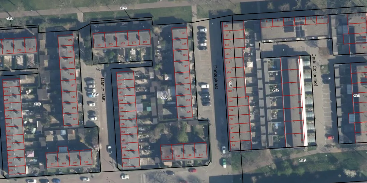 Het perceel waarop Dantestraat 131 staat heeft een oppervlakte van 3922 m². Dit is een zeer groot perceel. De perceeloppervlakte wordt geregistreerd door het Kadaster. Gedetailleerde informatie over de maten van dit perceel kunt u vinden in het rapport Kadastrale kaart met maatvoering van Dantestraat 131.