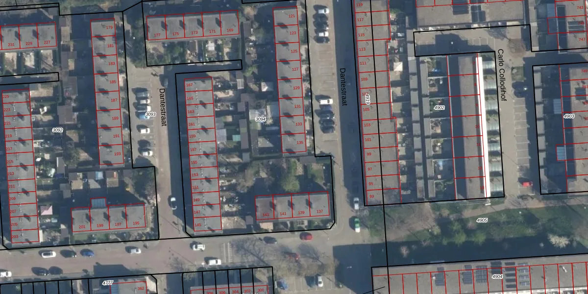 Het perceel waarop Dantestraat 135 staat heeft een oppervlakte van 3922 m². Dit is een zeer groot perceel. De perceeloppervlakte wordt geregistreerd door het Kadaster. Gedetailleerde informatie over de maten van dit perceel kunt u vinden in het rapport Kadastrale kaart met maatvoering van Dantestraat 135.