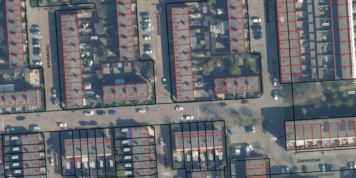 Het perceel waarop Dantestraat 147 staat heeft een oppervlakte van 3922 m². Dit is een zeer groot perceel. De perceeloppervlakte wordt geregistreerd door het Kadaster. Gedetailleerde informatie over de maten van dit perceel kunt u vinden in het rapport Kadastrale kaart met maatvoering van Dantestraat 147.
