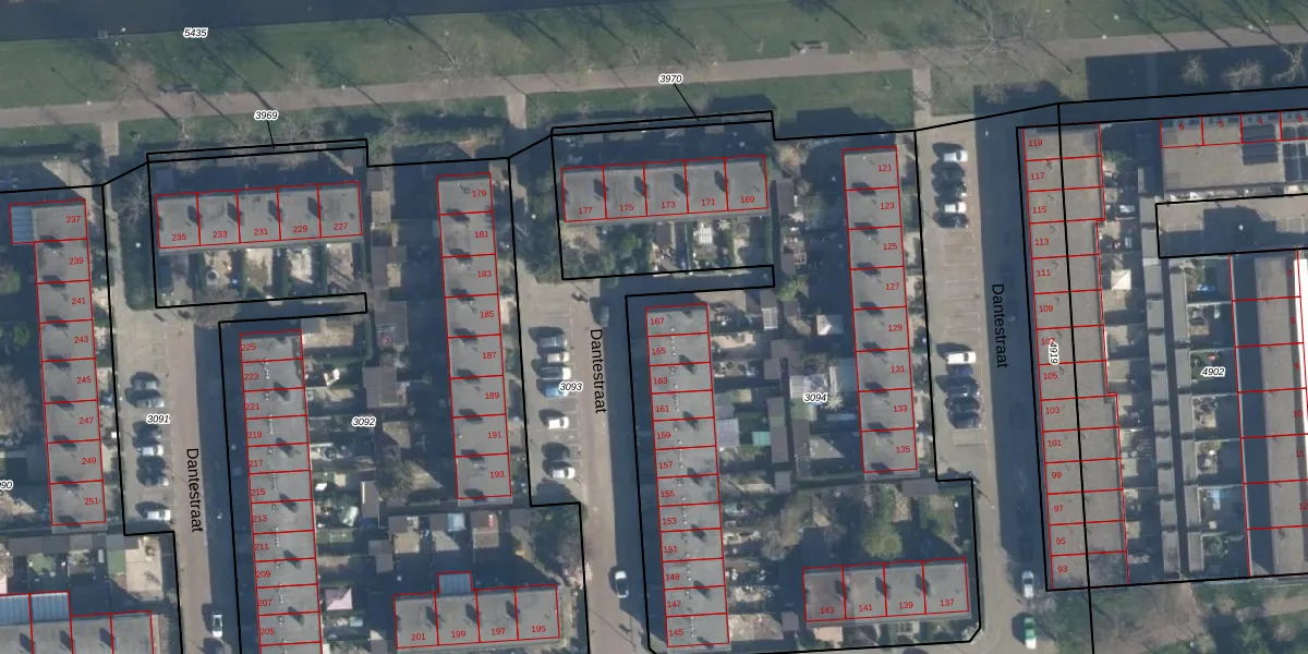 Het perceel waarop Dantestraat 167 staat heeft een oppervlakte van 3922 m². Dit is een zeer groot perceel. De perceeloppervlakte wordt geregistreerd door het Kadaster. Gedetailleerde informatie over de maten van dit perceel kunt u vinden in het rapport Kadastrale kaart met maatvoering van Dantestraat 167.