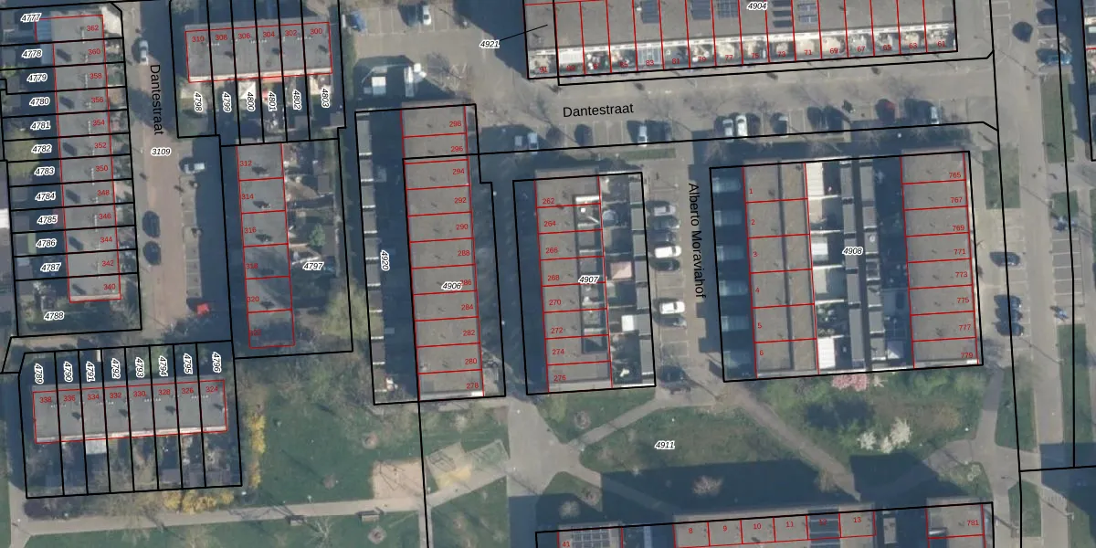 Het perceel waarop Dantestraat 268 staat heeft een oppervlakte van 916 m². Dit is een groot perceel. De perceeloppervlakte wordt geregistreerd door het Kadaster. Gedetailleerde informatie over de maten van dit perceel kunt u vinden in het rapport Kadastrale kaart met maatvoering van Dantestraat 268.