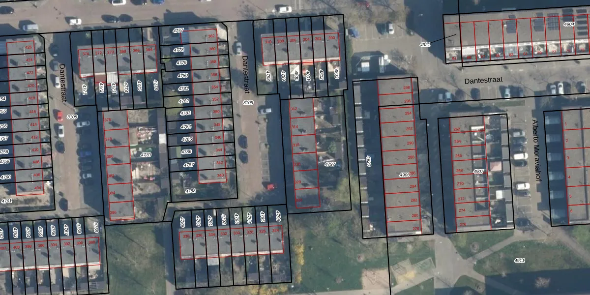 Het perceel waarop Dantestraat 316 staat heeft een oppervlakte van 837 m². Dit is een groot perceel. De perceeloppervlakte wordt geregistreerd door het Kadaster. Gedetailleerde informatie over de maten van dit perceel kunt u vinden in het rapport Kadastrale kaart met maatvoering van Dantestraat 316.