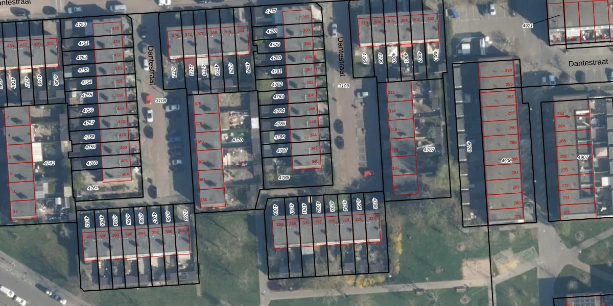 Dantestraat 342 is gelegen op kadastraal perceel ISM01C4787. Deze kadastrale aanduiding is uniek en wordt gebruikt door het Kadaster om eigendomsrechten en andere zakelijke rechten vast te leggen. Het perceel maakt onderdeel uit van de kadastrale gemeente IJsselmonde.