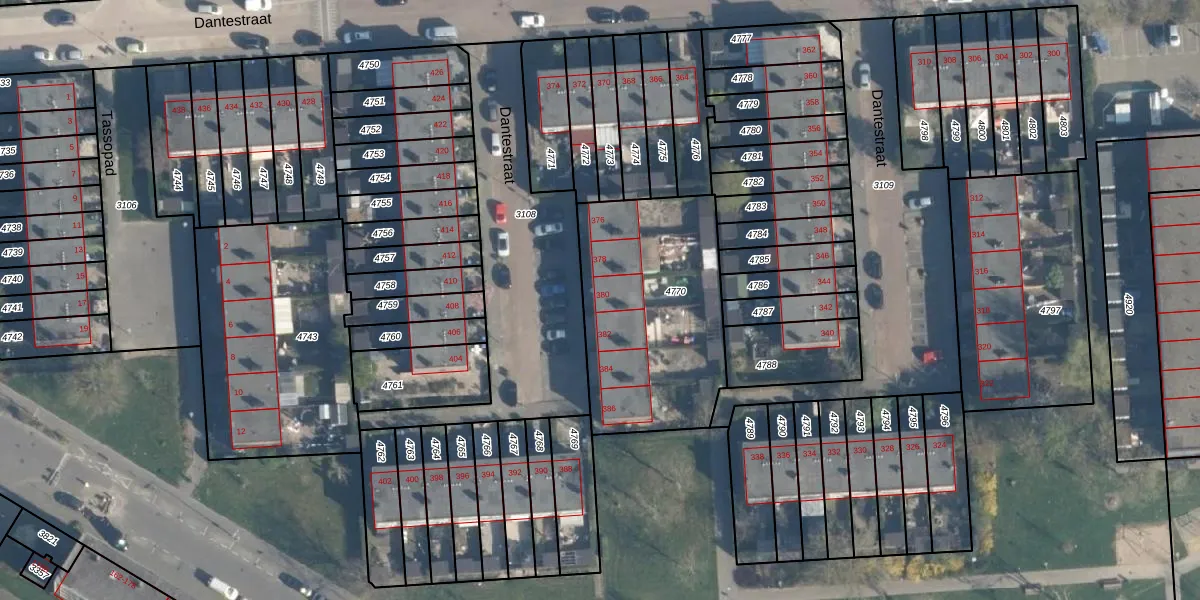 Het perceel waarop Dantestraat 380 staat heeft een oppervlakte van 879 m². Dit is een groot perceel. De perceeloppervlakte wordt geregistreerd door het Kadaster. Gedetailleerde informatie over de maten van dit perceel kunt u vinden in het rapport Kadastrale kaart met maatvoering van Dantestraat 380.