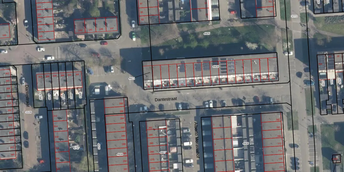 Dantestraat 85 is gelegen op kadastraal perceel ISM01C4904. Deze kadastrale aanduiding is uniek en wordt gebruikt door het Kadaster om eigendomsrechten en andere zakelijke rechten vast te leggen. Het perceel maakt onderdeel uit van de kadastrale gemeente IJsselmonde.