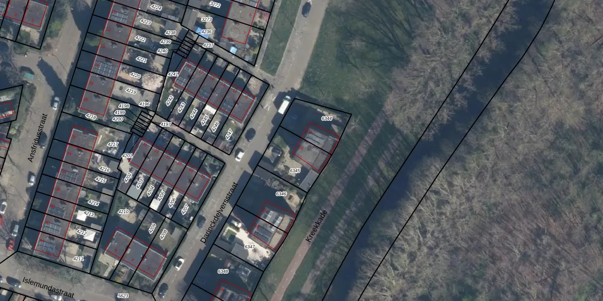 Gebruik de zoekbalk of klik op een perceel voor informatie over de adressen binnen dit perceel.