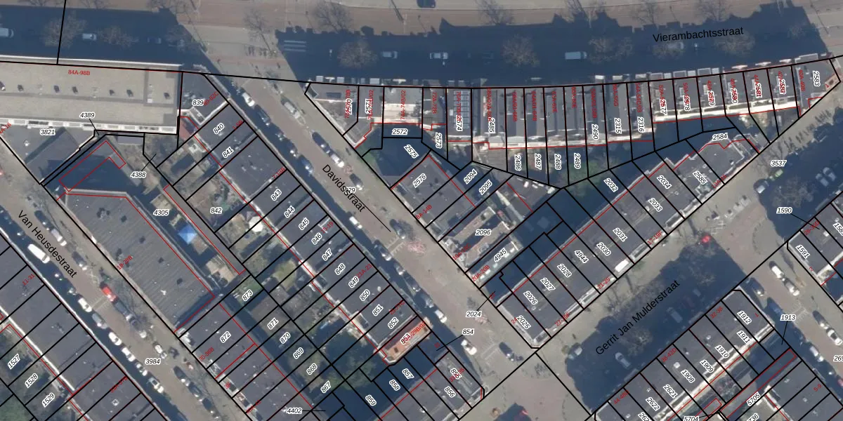 Het perceel waarop Davidsstraat 12-A staat heeft een oppervlakte van 93 m². Dit is een klein perceel. De perceeloppervlakte wordt geregistreerd door het Kadaster. Gedetailleerde informatie over de maten van dit perceel kunt u vinden in het rapport Kadastrale kaart met maatvoering van Davidsstraat 12-A.