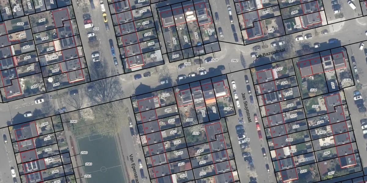 Het perceel waarop De Bazelstraat 28 staat heeft een oppervlakte van 209 m². Dit is een middelgroot perceel. De perceeloppervlakte wordt geregistreerd door het Kadaster. Gedetailleerde informatie over de maten van dit perceel kunt u vinden in het rapport Kadastrale kaart met maatvoering van De Bazelstraat 28.