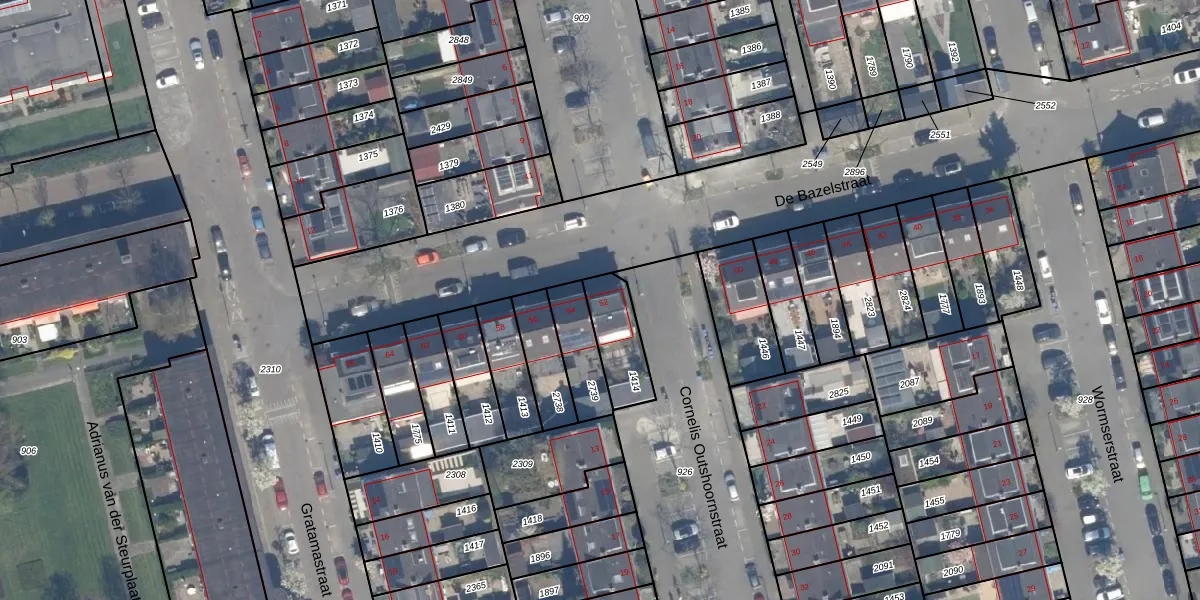 Het perceel waarop De Bazelstraat 52 staat heeft een oppervlakte van 165 m². Dit is een middelgroot perceel. De perceeloppervlakte wordt geregistreerd door het Kadaster. Gedetailleerde informatie over de maten van dit perceel kunt u vinden in het rapport Kadastrale kaart met maatvoering van De Bazelstraat 52.
