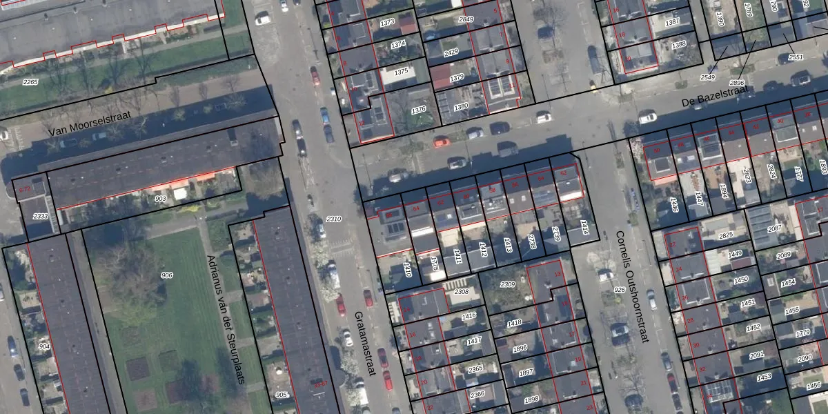 Het perceel waarop De Bazelstraat 64 staat heeft een oppervlakte van 141 m². Dit is een middelgroot perceel. De perceeloppervlakte wordt geregistreerd door het Kadaster. Gedetailleerde informatie over de maten van dit perceel kunt u vinden in het rapport Kadastrale kaart met maatvoering van De Bazelstraat 64.
